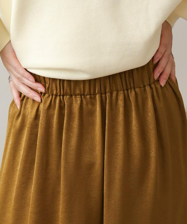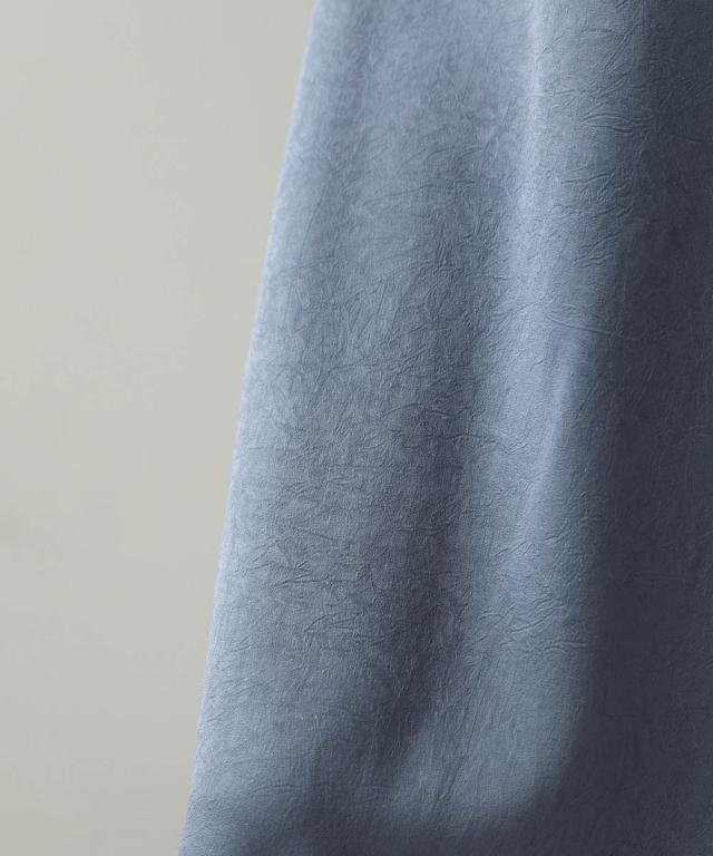シワになりにくくお手入れしやすいのが特徴で、くすみカラーはカジュアルにも合わせやすく普段スカートを履かない方にも挑戦しやすい一枚です。