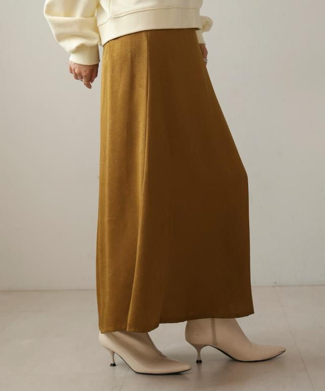 余計なデザインを取り除き、どんなアイテムとも合わせやすい着回し力に特化したスカートです。