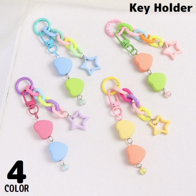 キーホルダー キーリング バッグチャーム レディース 女の子 チェーン ハート スター 星 ビーズ 可愛い 丸型カラビナ スマホ