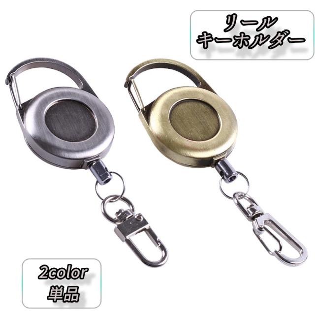 リールキーホルダー コードーリール 単品 カラビナ 伸縮 落下防止 伸びる キーホルダー ストラップ レトロカラー 多用途 クー