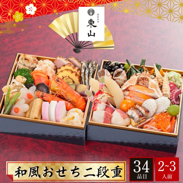 おせち 料理 予約 お節 2026 個室和食 東山 新宿本店 和風おせち 二段重 2〜3人前 34品目 東山-13.8 送料無料 【着不可地域:北海道・沖縄・離島】【12月31日着】【時間指定不可】
