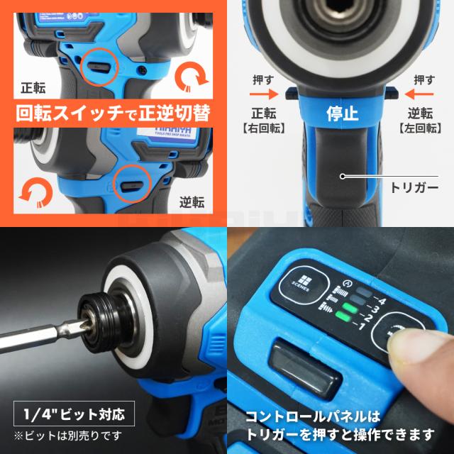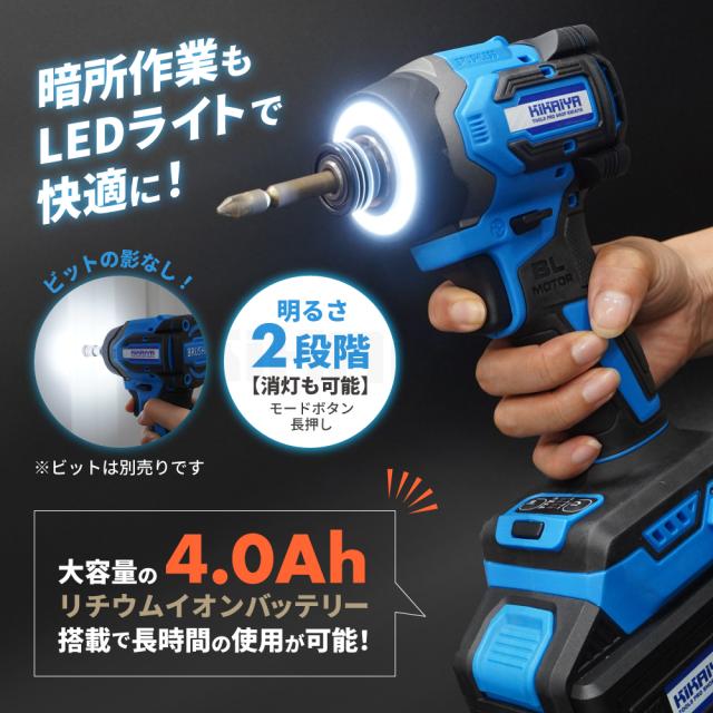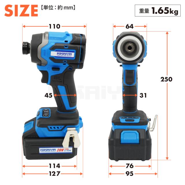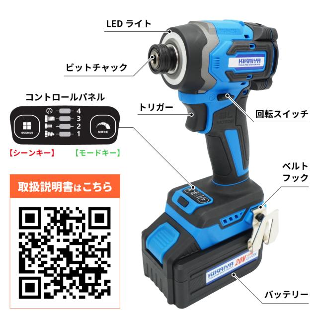 インパクトドライバー ステップドリルプレゼント 充電式 1/4ビット 230Nm 20V コードレス ブラシレスモーター リチウムイオンバッテリー KIKAIYA