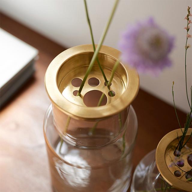 口径が広い花瓶でもバランスよく生けることができる真鍮トレー