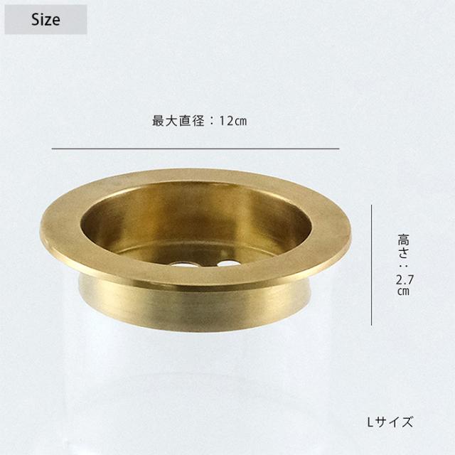 同ブランドの花瓶「リューズガラス ロケート」の口径に合わせた、真鍮製のトレー Lサイズ。