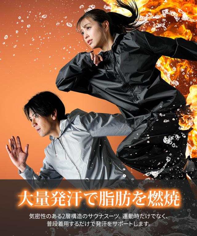 サウナスーツ サウナスーツ 上下セット レディース メンズ フード付き 気密性 発汗 滝汗 ダイエット サウナ 効果 エクササイズ 運動 ウォーキング ジョギング ダイエット 減量 女性用 男性用 男女兼用 シンプル 黒 ブラック グレー 発汗シェイプエクササウナスーツ 173