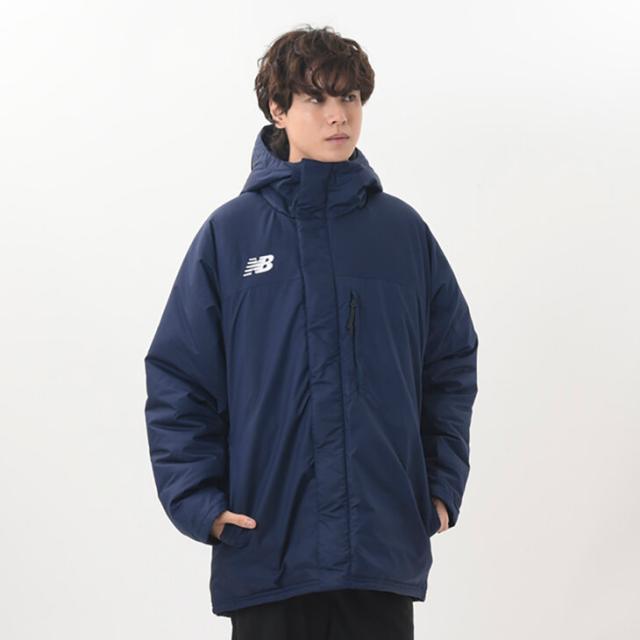 ニューバランス 中綿コート メンズ Newbalance パデットハーフコート 防寒 アウター サッカー フットサル スポーツウェア 男性 ジャンバー 保温 防風 メンズ用アウター ブランド アパレル 紺色 ネイビー ベンチコート/JMJF1423-NV【ギフト不可】