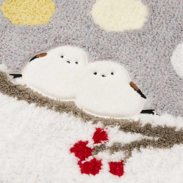 雪の妖精とも呼ばれる可愛らしい小鳥「シマエナガちゃん」シリーズのトイレマットです。使いやすいスタンダードサイズです。汚れが気になったらネットに入れて洗濯機で丸洗いできるので、お手入れも簡単です。