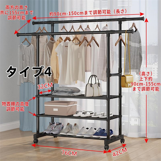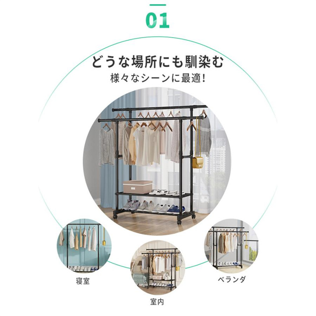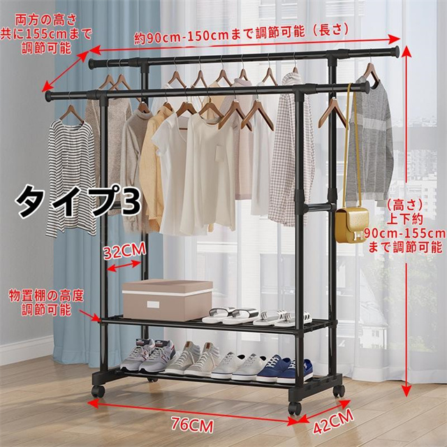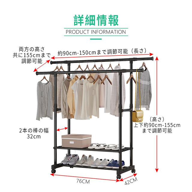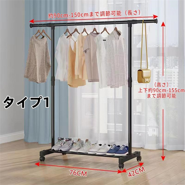 ハンガーラック 頑丈 伸縮 パイプハンガーラック 衣類収納 洋服掛けラック 洋服収納 キャスター付き コートハンガー コンパクト収納 部屋干し 梅雨対策 送料無料