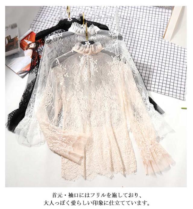 シアートップス シアートップス 花柄 レディース ハイネック 花柄レース トップス ギャザー 肌見せ 透け感 シースルー 重ね着 シアーシャツ 長袖 薄手 フリル 可愛い 春秋冬 レイヤード風 お洒落 キレイめ