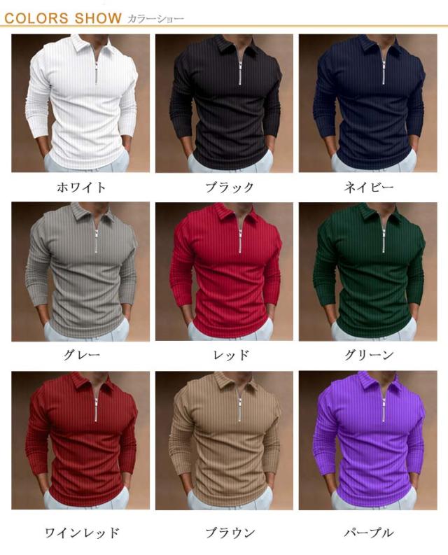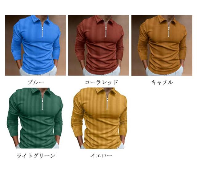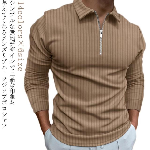 | 14colors×6size シンプルな無地デザインで上品な印象を与えてくれるメンズリブハーフジップポロシャツ | |