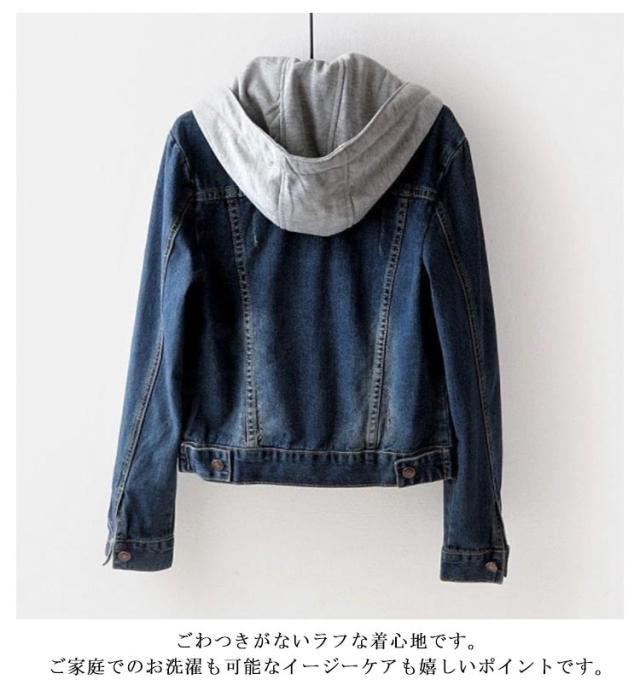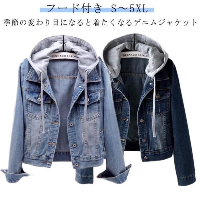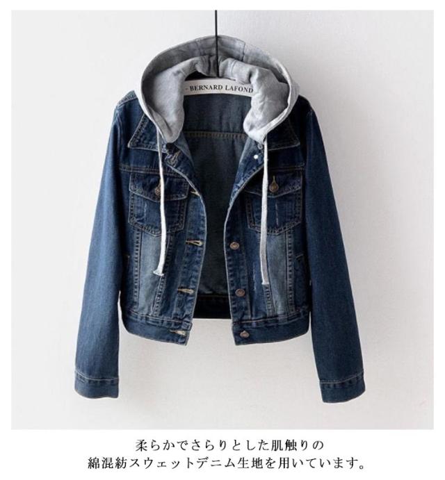 20代 大きいサイズ Gジャン レディース フード付き デニム ジャケット デニムジャケット フード スウェットデニム ゆったり 40代 ショート丈 かわいい ファッション デニムアウター 大人 30代 フード付き 春 秋 ポケット付き シンプル