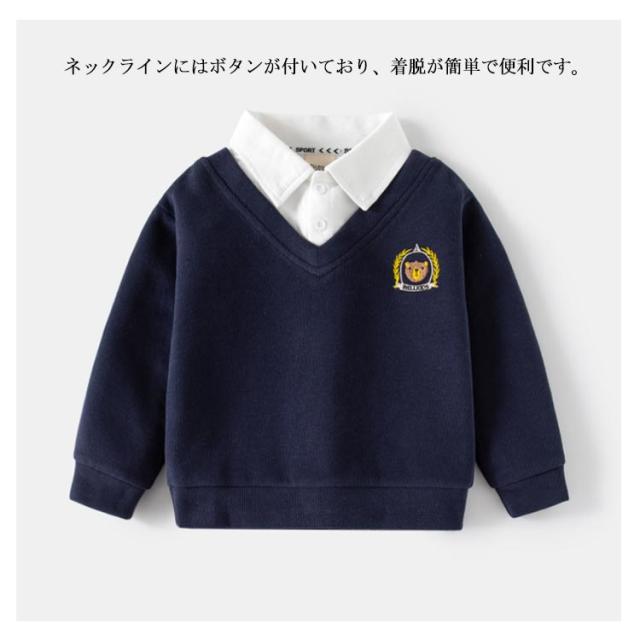 秋冬 レイヤード風 男の子 子ども 130cm 110cm 120cm 90cm ベビー 子供服 100cm 襟付き レイヤード風 トップス キッズ トレーナー プルオーバー 通園 通学 スウェット 幼稚園 運動会 カジュアル