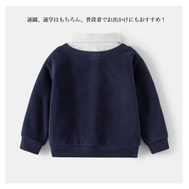 子供服 レイヤード風 男の子 90cm 120cm トップス 130cm 幼稚園 ベビー 100cm キッズ 襟付き 110cm 秋冬 子ども トレーナー プルオーバー 通園 通学 スウェット レイヤード風 運動会 カジュアル
