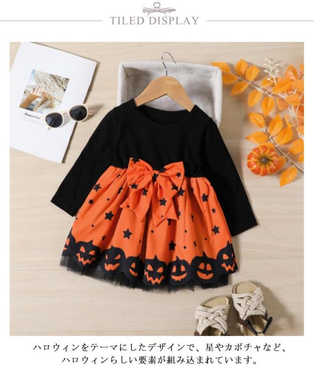 長袖 ウイッチ ハロウィン パンプキン 秋冬 魔女 チュール ハロウィン カボチャ 子供 ブラック オレンジ 魔女 魔法使い 小学生 衣装 コスプレ 子供 女の子 コスチューム パーティー ドレス 演劇 学院祭 文化祭 可愛い cosplay