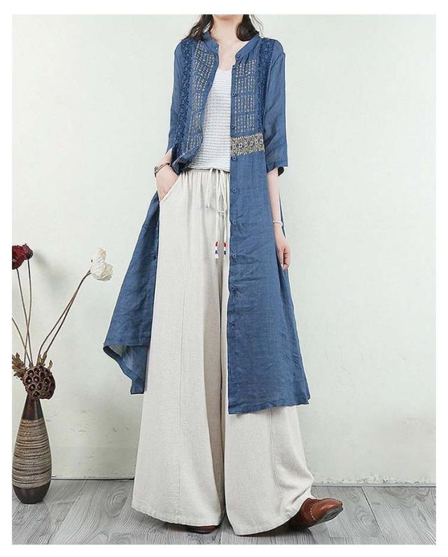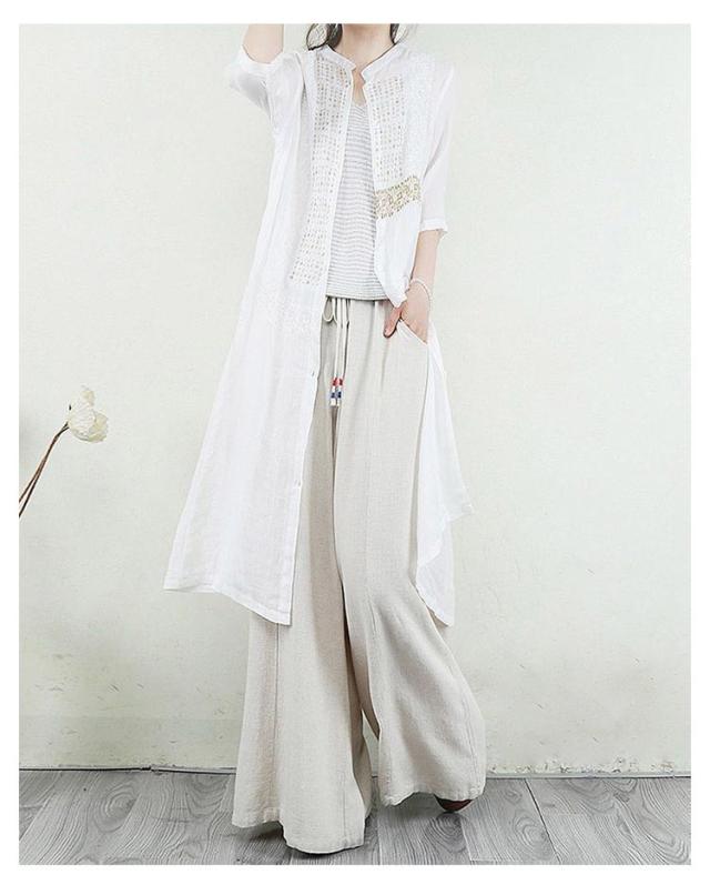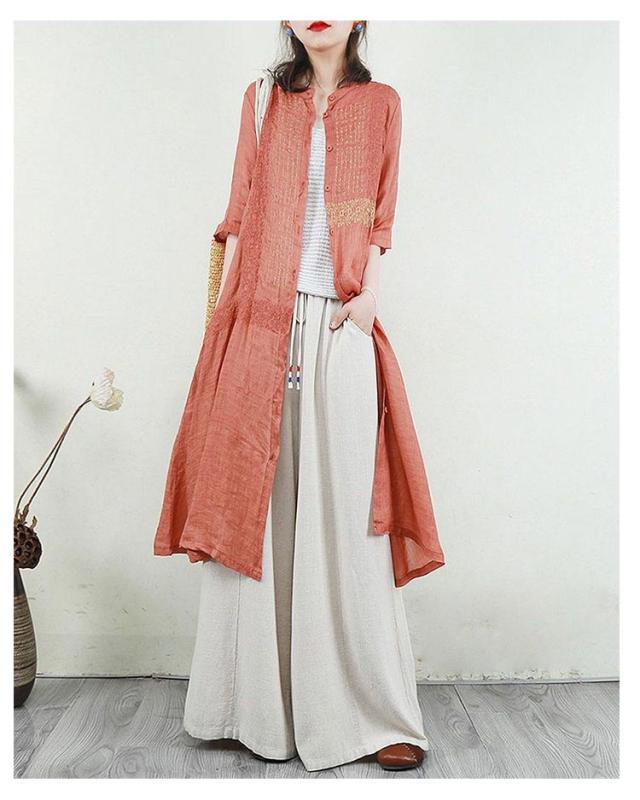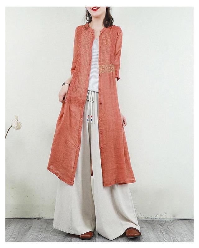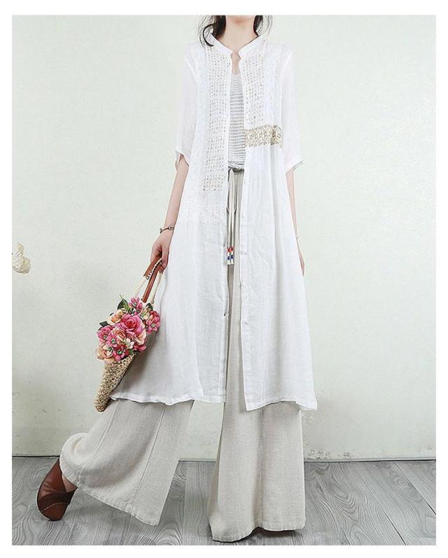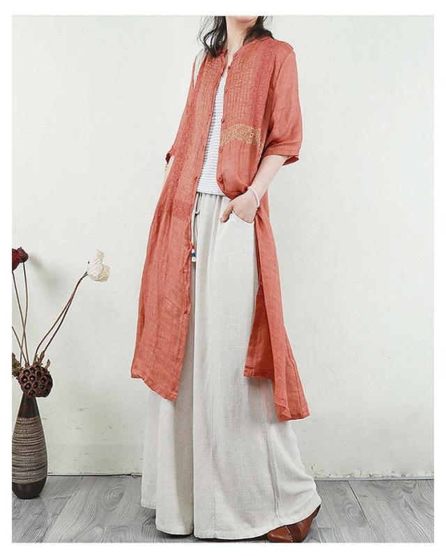 羽織り 刺繍シャツワンピース カーディガン シャツワンピース ワンピース 長袖 刺繍シャツワンピース ロング丈 シアー ロングシャツワンピース 襟付き 5分袖 夏 チュニック ロング ワンピース レディース コットンリネン 体型カバー 紫外線対策