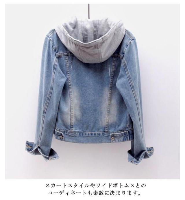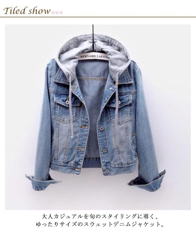 大人 デニムジャケット ゆったり レディース スウェットデニム ショート丈 ジャケット フード付き フード付き フード デニム 大きいサイズ 羽織 かわいい ファッション デニムアウター 20代 Gジャン 40代 春 秋 ポケット付き シンプル