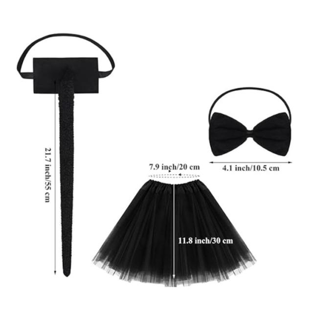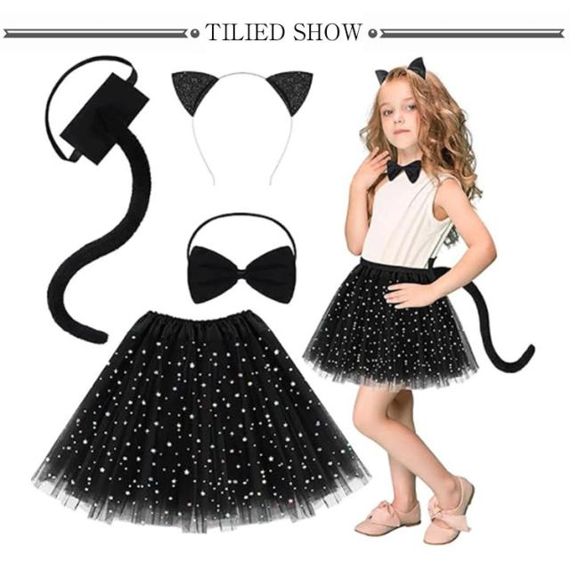 | 【セット内容】 A:チュールスカート+猫耳カチューシャ+尻尾+チョーカー B:チュールスカート+猫耳ヘアグリップx2+尻尾+チョーカー 黒猫をテーマにした子ども用コスプレ仮装セットです。 ふわふわのチュールスカートで、女の子っぽく可愛い作りになっています。 ハロウィン、クリスマス、仮装パーティー、学園祭、発表会文化祭、演奏会、ステージ衣装、写真撮影などさまざまな場面で活躍します。 | |