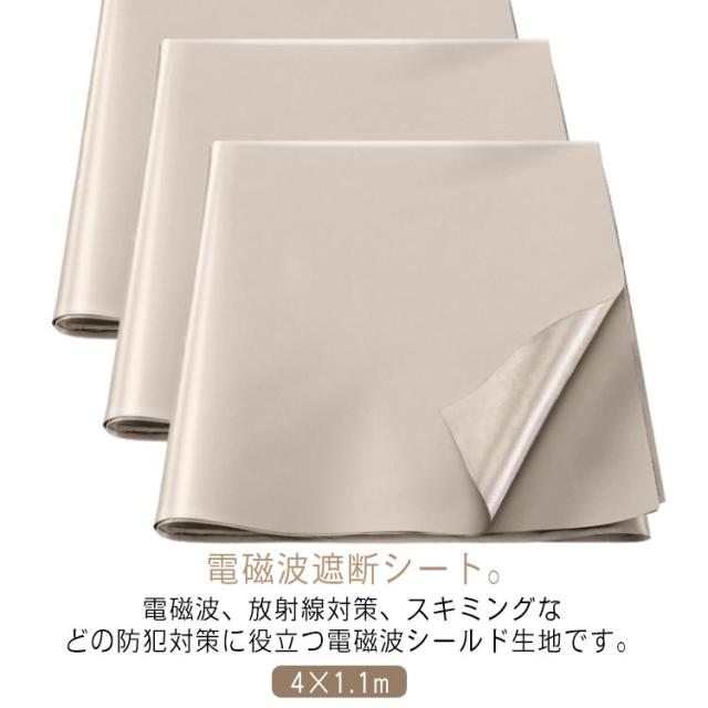 | 電磁波遮断シート。電磁波、放射線対策、スキミングなどの防犯対策に役立つ電磁波ド生地です。99.99%の電磁波を遮断することができます。4×1.1m 必要なサイズに自由にカットできるので、ハンドメイドするのにおすすめです。カードケースや財布の内布として使用すればスキミング防止になります。 またスマホ、パソコンの電磁波対策や電子レンジ使用時のWi-Fiの通信不良対策にも。 | |