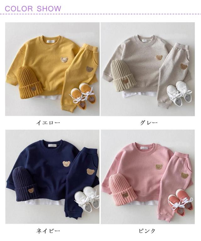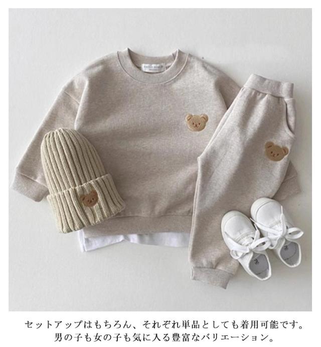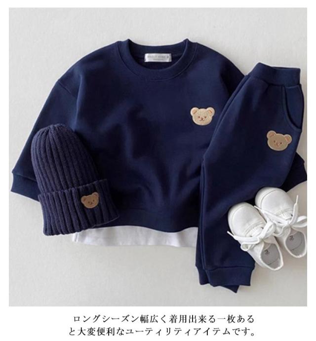 ベビー服 長袖 男の子 キッズ 女の子 春 上下セット キッズ お揃い パーカー 子供服 秋 冬 セットアップ ジュニア 洋服 オシャレ 可愛いくま カジュアル 保温 防寒 暖かい 普段着 遊び着 80cm 90cm 100cm 110cm 1歳 2歳