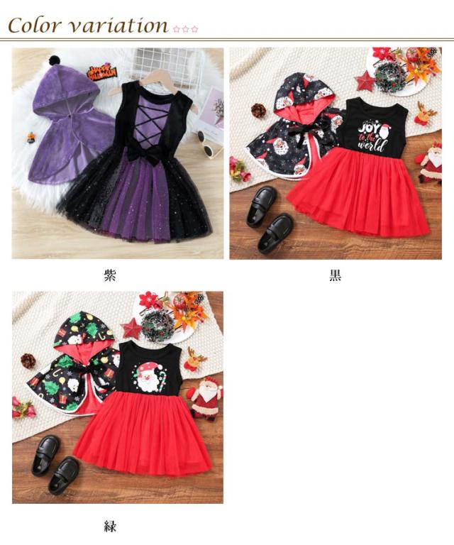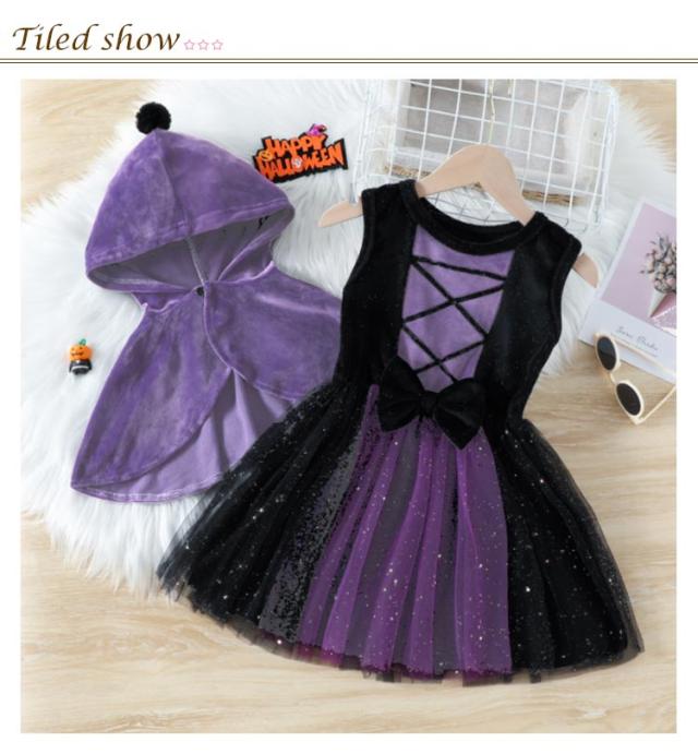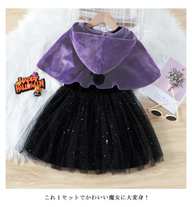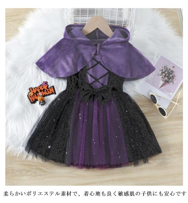 魔女 コスチューム 巫女 ハロウィン ハロウィン 衣装 ワンピース 子供 コスプレ ベビー ドレス 女の子 赤ちゃん マント ウィッチ 小学生 仮装 クリスマス サンタ 変身 パープル プリンセスなりきり 2点セット