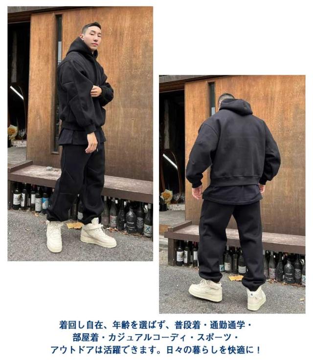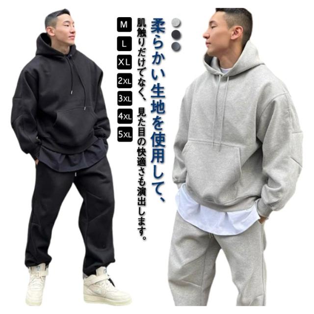 上下セット スウェット 大きいサイズ ジャージ メンズ スウェットパンツ 春服 秋服 スポーツウェア 裏起毛 スウェット トレーナー かっこいい プルオーバー ポケット付き フード付き 長袖 ジャージ パーカー セットアップ 部屋着