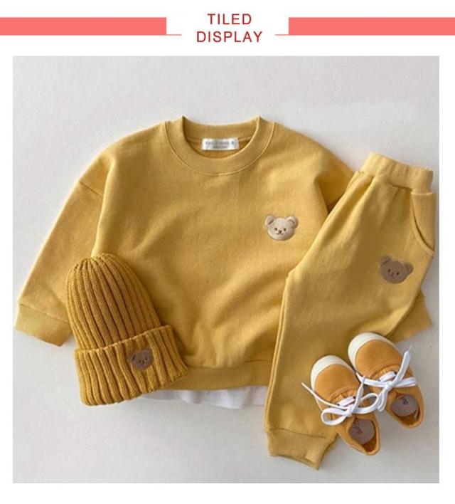 可愛いくま 子供服 ベビー服 セットアップ 2点セット 男の子 長袖 洋服 キッズ 女の子 オシャレ 上下セット 秋 普段着 春 ジュニア 遊び着 冬 お揃い カジュアル 防寒 保温 スウェットパンツ キッズ 暖かい 送料無料 80 90 100 110 120 130cm 1歳 2歳