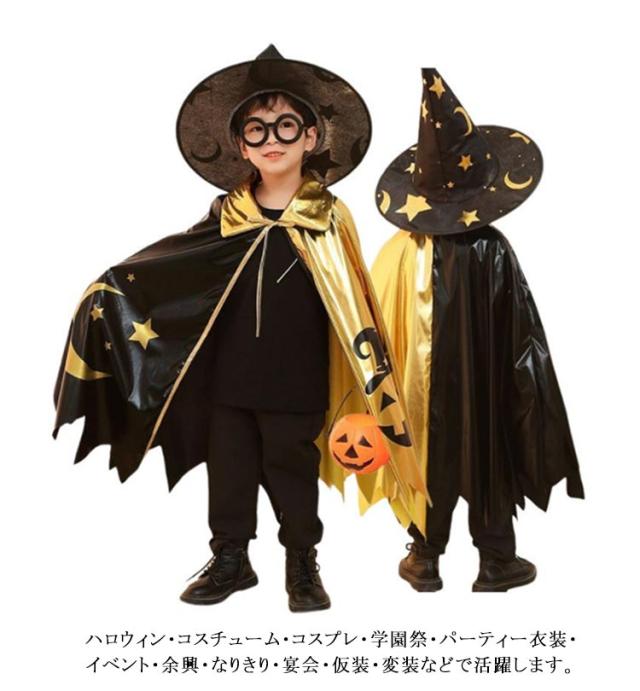 とんがり帽子 キッズ ハロウィン 子供 マント 帽子付き コスプレ衣装 男の子 コスチューム ハロウィン衣装 キラキラ カボチャ ポンチョ ハロウィン 子ども 女の子 コスプレ イベント 仮装 パーティー 演出服 男女兼用