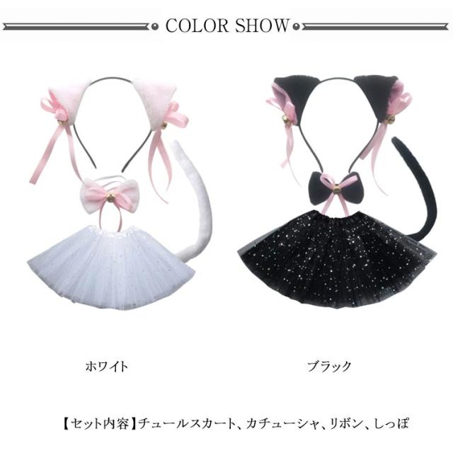 ハロウィン 衣装 子供 女の子 黒猫 白猫 コスプレ仮装 4点セット 可愛い チュールスカート 猫耳カチューシャ リボン しっぽ キッズ コスチューム ハロウィン仮装 子供 コスプレ衣装 変装 パーティー テーマパーク 発表会 学園祭 演奏会 保育園 幼稚園 送料無料
