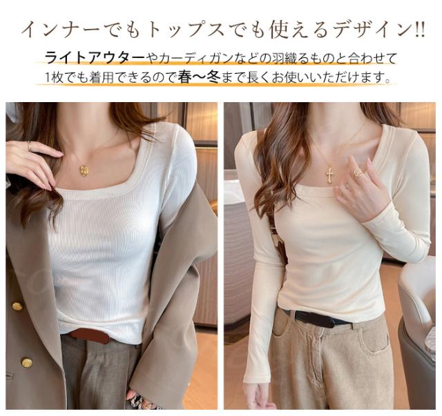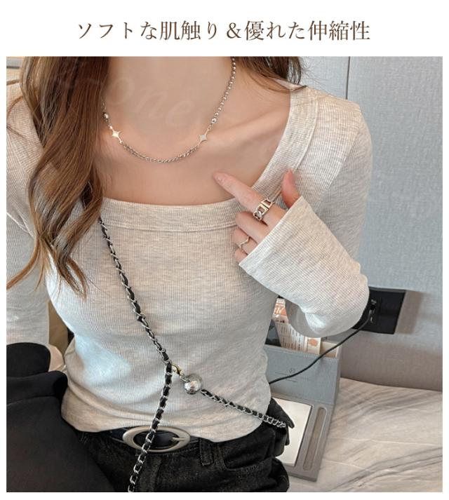 【2点まとめ買いで送料無料】tシャツ カットソー リブ 春新作 レディース 長袖 綿混 インナー 春秋冬 トップス カジュアル 着痩せ 重ね着 無地 ストレッチ 大きいサイズあり 柔らか シンプル 上品 着回し Tシャツ 入学式 入園式