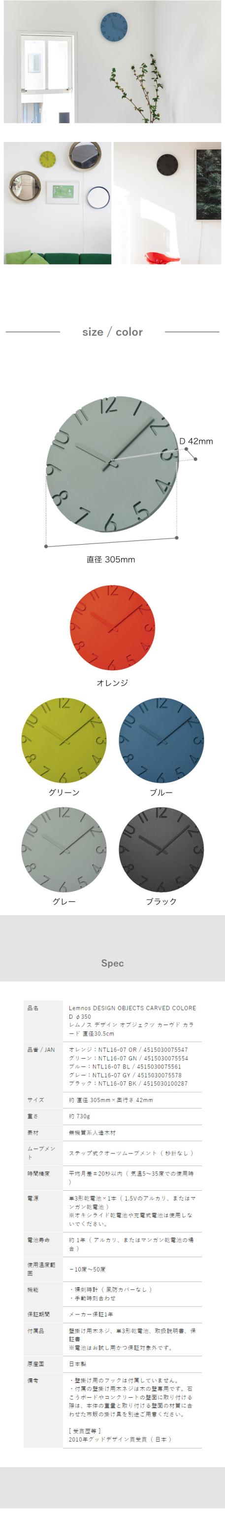 [ Lemnos CARVED COLORED φ305 ]レムノス 掛け時計 カーヴド カラード 30.5cm 壁掛け時計 ウォールクロック 時計 おしゃれ 壁掛け 掛時計 かけ時計 北欧 静音 リビング インテリア タカタレムノス CARVEDシリーズ NTL16-07