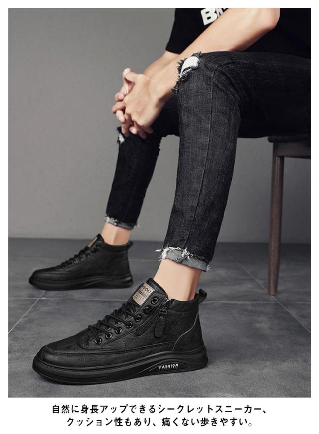 ワークブーツ スニーカー インヒールブーツ シークレットシューズ 身長アップ 10cm/8cm/6cm ハイカットスニーカー メンズ シークレットブーツ 背が高くなるシューズ インヒールシューズ 革靴 シークレットスニーカー 24.5-27cm ビジネス 通勤