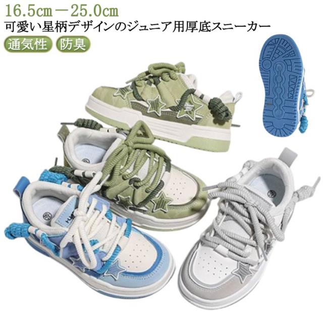 スニーカー 子供 厚底スニーカー ハイカット 子供靴 ヒップホップ ダンススニーカー 防臭 普段着 キッズ 幅広 子供シューズ 通気性 カジュアルシューズ 春夏秋冬 通園 星柄 小学生 甲高 通学 厚底スニーカー 女の子 男の子 ダンス靴 ジュニア 白 緑 グリーン
