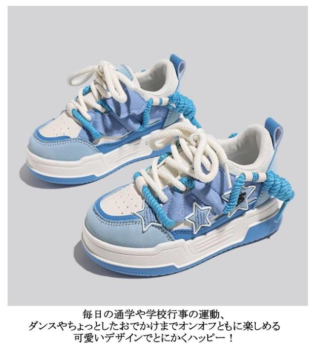 | 可愛い星柄デザインのジュニア用厚底スニーカー。【16.5cm−25.0cm】 高めのカットが存在感を漂わせるデザイン 履き口には足首をホールドする厚手のパッドを採用し、足あたりも良好♪ インソールは、足にそったカップインソールを採用。動きに合わせて折れ曲がる仕様なので、スムーズに走ることができます。 ゴム素材で滑りにくい靴底 サイドの星柄デザインが目を引く。 毎日の通学や学校行事の運動、ダンスやちょっとしたおでかけまでオンオフともに楽しめる可愛いデザインでとにかくハッピー! | |