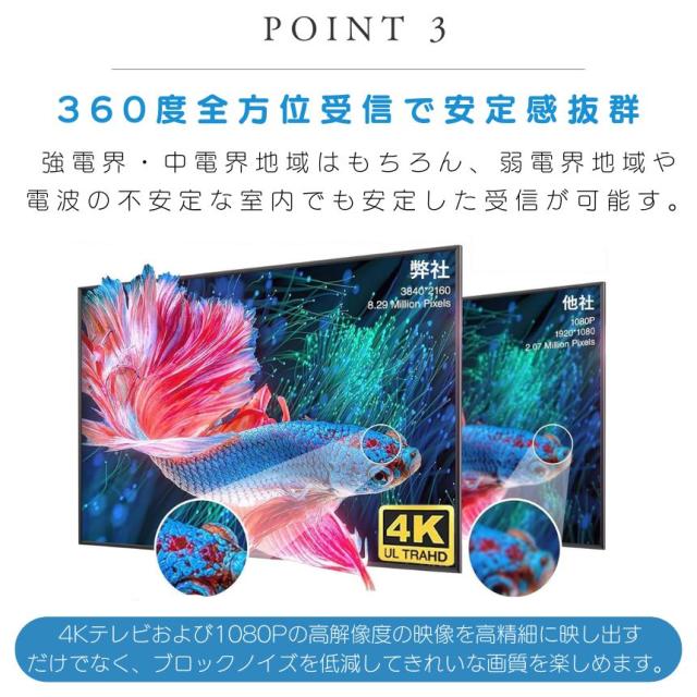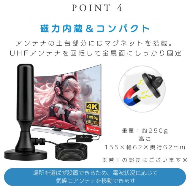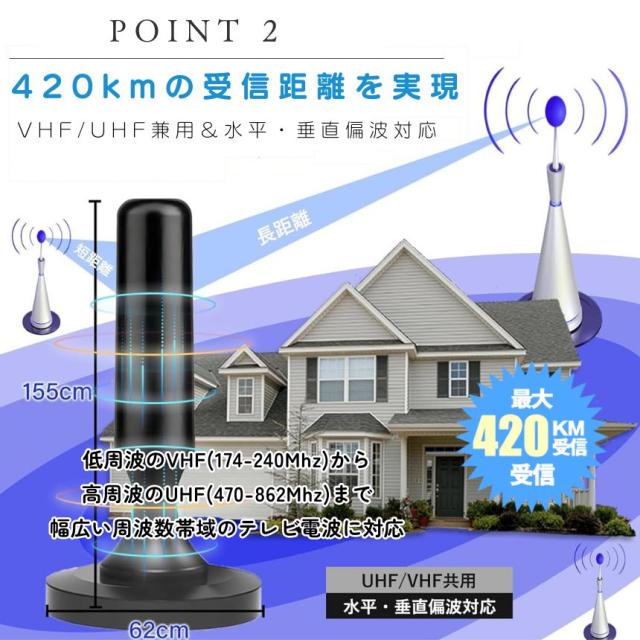 最大420kmの受信距離を実現した高性能なHD室内アンテナです。