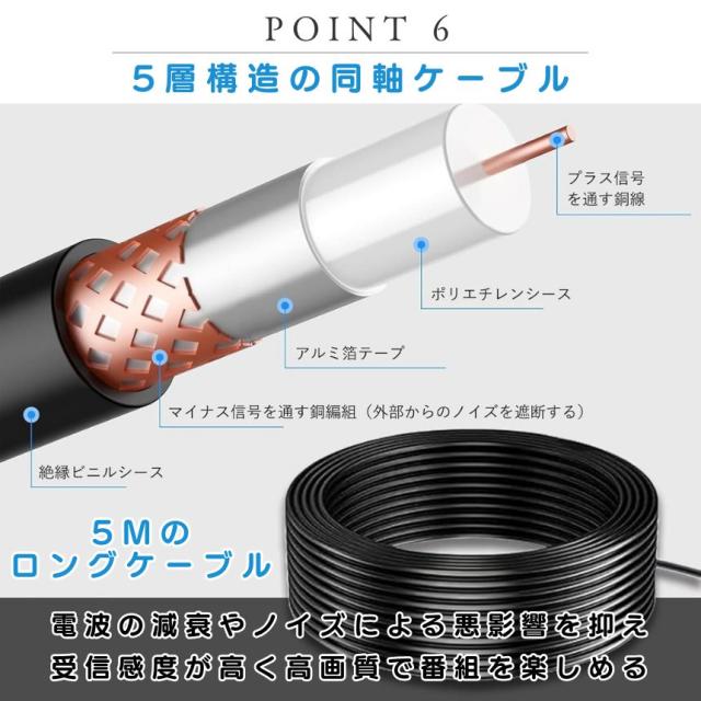 ブースター内蔵で360°全方位から電波を受信できる他、