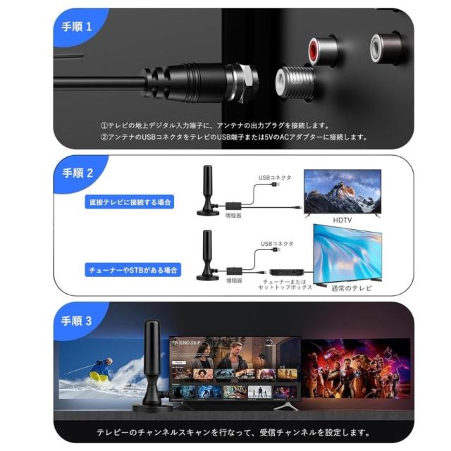 【 鮮明に映る距離モード搭載 】 室内アンテナ テレビ TV 最強 テレビアンテナ 地デジアンテナ 地デジ 信号 ブースター内蔵 4K HD TV 420KM受信範囲 360度全方位受信 アンテナ 高感度 無料視聴 簡単接続 USB式 車載 磁力 固定 高性能 UHF VHF 対応 室内 屋外