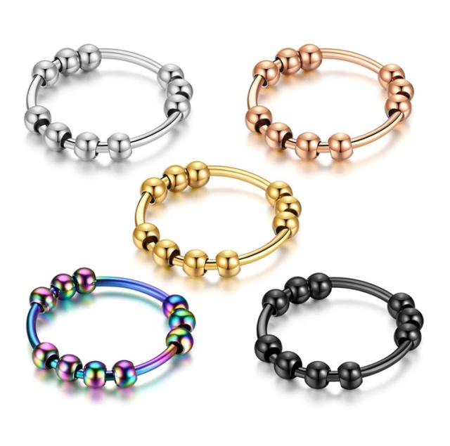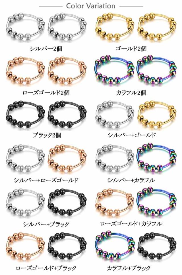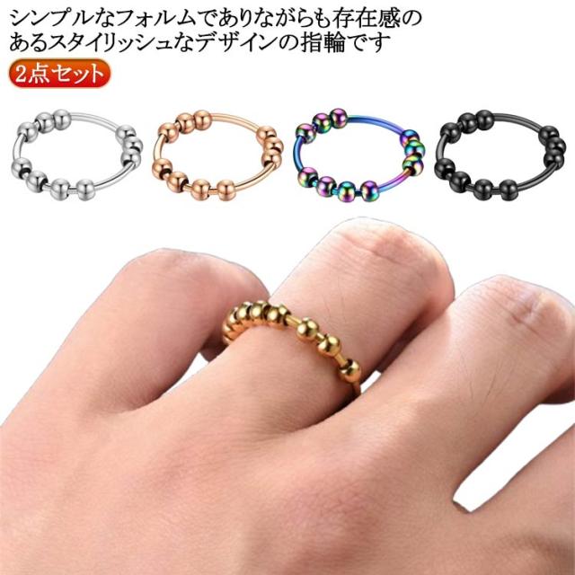 【送料無料】 指輪 リング 2点セット ステンレス ゴールド シルバー スピナー指輪 ビーズリング レディース メンズ ストレス解消 不安リング スチール 回転可能 ジュエリーアクセサリー シンプル カラフル お洒落 記念日 プレゼント ギフト 母の日 父の日