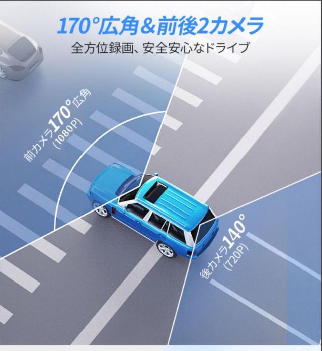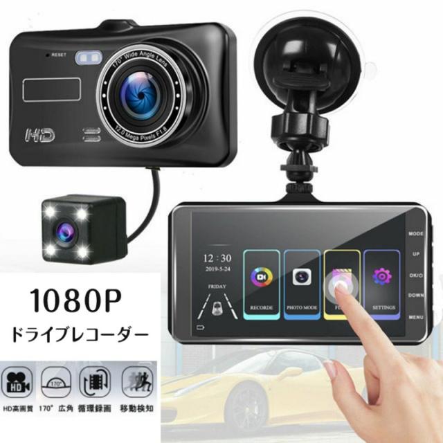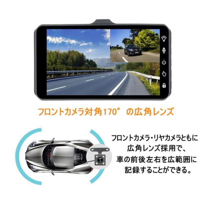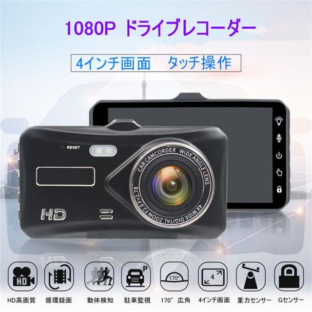 ドライブレコーダー 前後カメラ 駐車監視 フロント170°/バック140° 170度広角 4.0インチ 小型ボディループ録画 動体検知 暗視機能 衝撃録画 上書き録画 Gセンサー搭載 ドラレコ 高速起動 英語/日本語対応