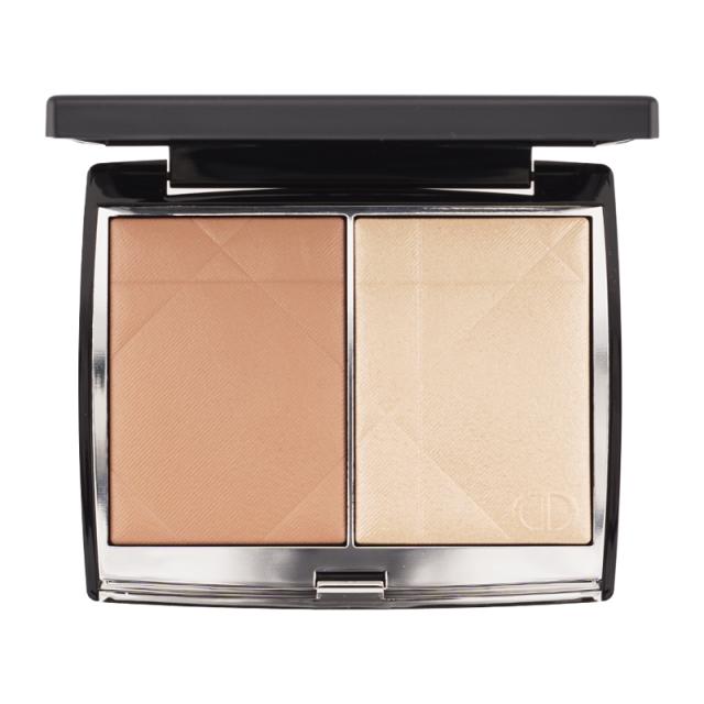 やわらかな血色で頬を彩るチーク カラーに、繊細な輝きをプラスするハイライト カラーをセットしたデュオ パレット。