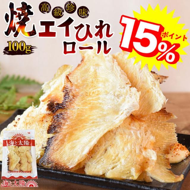 【P15%還元!】<焼エイひれロール100g> 調理不要 そのまま食べられる 香ばしく柔らかい食感 無漂白 大容量 居酒屋 高級珍味メール便 えいひれ エイヒレ 干物 おつまみ おやつ 海と太陽 チャック袋 コラーゲン 晩酌 送料無料 バレンタインデー