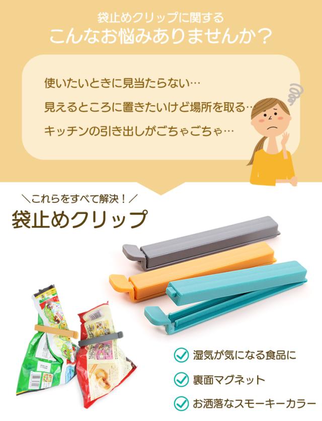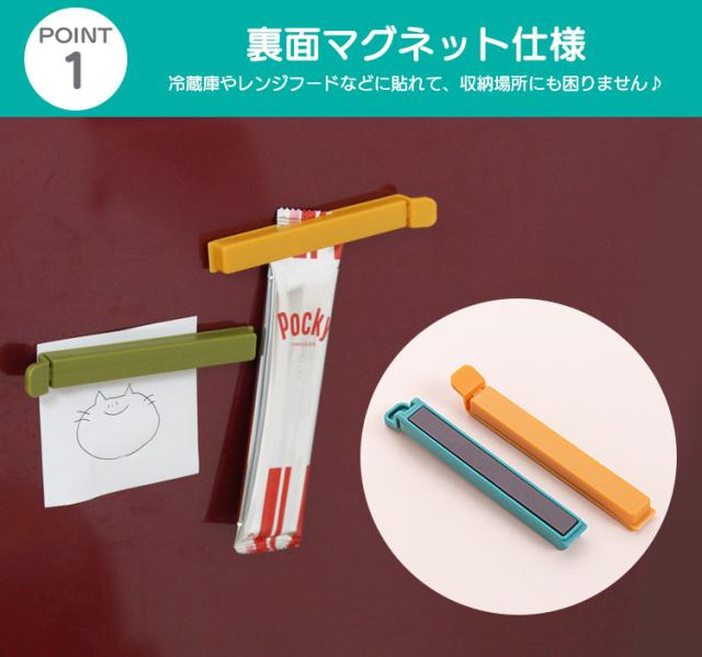 マグネット式 袋止めクリップ 10個セット キッチンクリップ マグネットバー マグネット 冷蔵庫 クリップ かわいい フードクリップ 袋留め