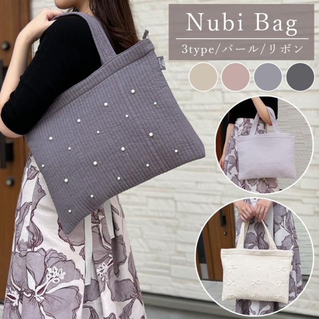 ヌビ レッスントート マチなし パール リボン イブル キルティング ヌビバッグ トートバッグ マザーズバッグ ポケット 大容量 軽量 レディース ママバッグ A4 PC かわいい おしゃれ 軽い お出かけ キッズ 出産祝い ギフト プレゼント サブバッグ 超軽量 かばん