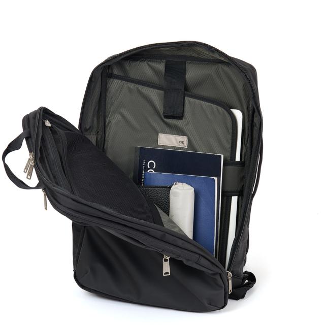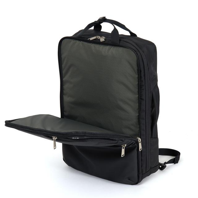 021804は、2WAYのバックパック。スマートかつシンプルなデザインで、ビジネスシーンはもちろん、普段使いにも使用できます。A4サイズを余裕を持って収納でき、14インチ程度のPCスペースも装備されています。