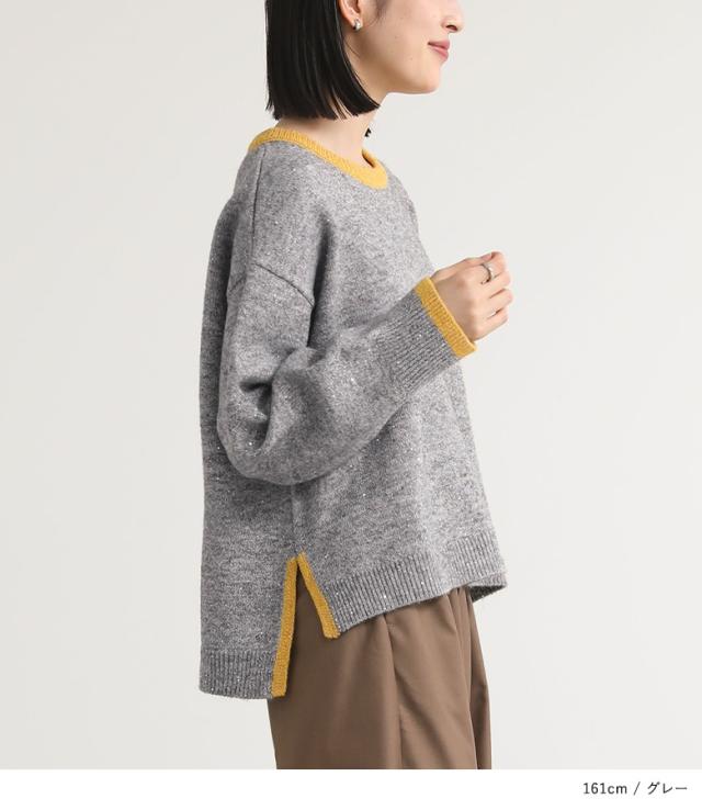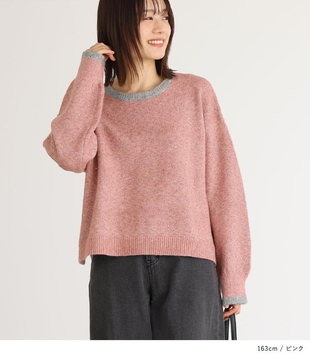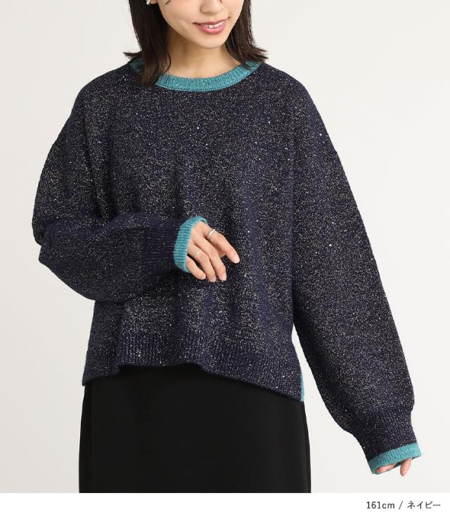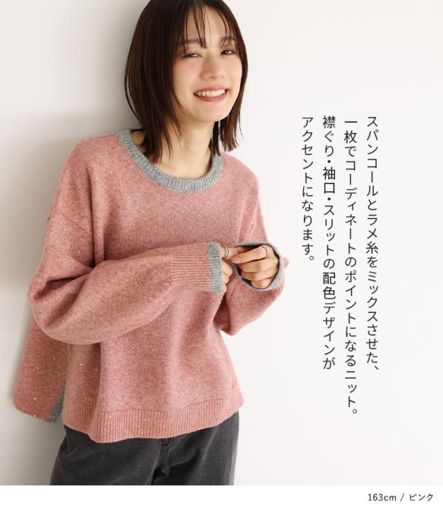 ニット 長袖 レディース トップス セーター ラメニット スパンコール クルーネック 配色 無地 ショート丈 ドロップショルダー スリット 【TP】 ニット・セーター プルオーバー ざっくりニット n'OrLABEL ノア—ルレーベル 大人女子 大人可愛い お洒落可愛い 大人カジュアル ベーシック ニュアンス ラフ エフォートレス オフィスカジュアル ショート丈ニット ミディ丈 ミドル丈 リブ ラメ糸 レイヤード 重ね着 おうちで洗える 秋 冬 キラキラ カジュアル シンプル ナチュラル モード キレカジ フェミニン 上品 きれいめ Sサイズ Mサイズ Lサイズ LLサイズ 3Lサイズ XLサイズ フリーサイズ ぽっちゃり 体型カバー 大きいサイズ プラスサイズ 10代 20代 30代 40代 50代 60代 女子会 オフィス 通勤 通学 お買い物 お出掛け 旅行 リゾート レジャー おしゃれ お洒落 トレンド 流行 osharewalker オシャレウォーカー おしゃれうぉーかー ピンク 桃色 ネイビー 紺 グレー 灰色 バイカラー 春色ニット[ID]14tm049[n'OrLABELスパンコールラメ配色ニット]