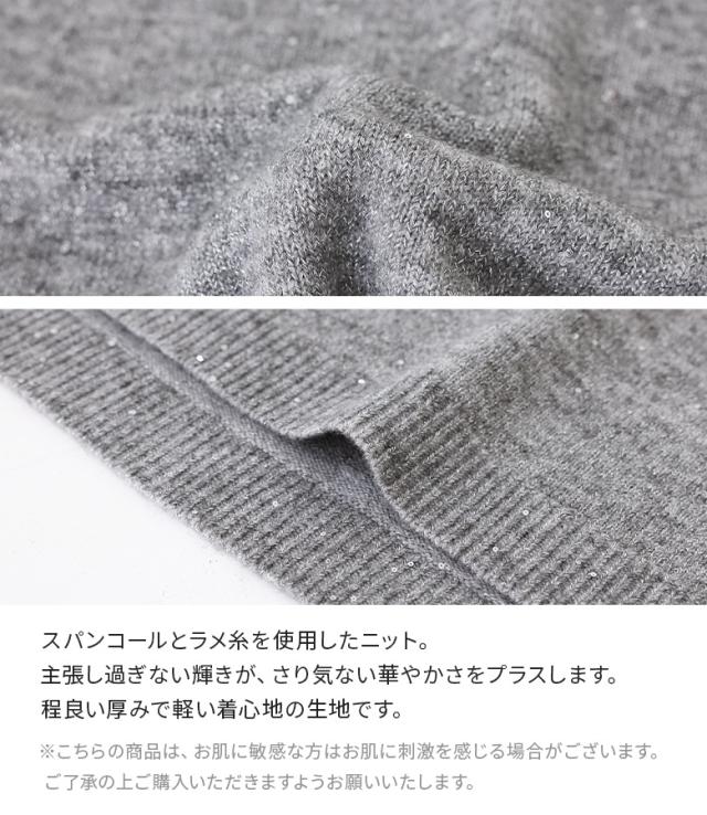23日最大1200円クーポン 『スパンコールラメ配色ニット』【メール便不可】【30】[ニット 長袖 レディース トップス セーター ラメニット スパンコール クルーネック 配色 無地 ショート丈 ドロップショルダー スリット]