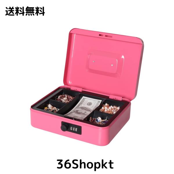 Lysmics 金庫 手提げ金庫 ダイヤル式 貯金箱 ミニ金庫 収納ボックス 家庭用 防犯 事務用品(ピンク, M)