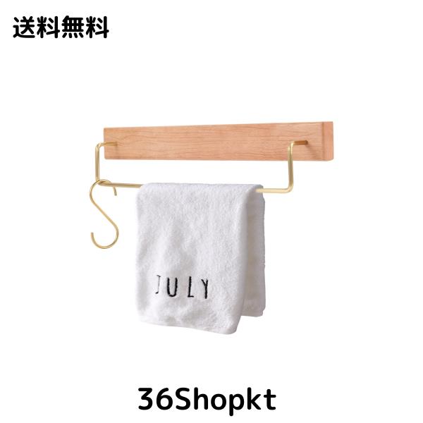 Sakulaya タオル掛け タオルバー タオルハンガー 天然木 真鍮 取付簡単 キッチン タオル掛け 洗面所 浴室 お風呂 収納 S字フック付き ブ