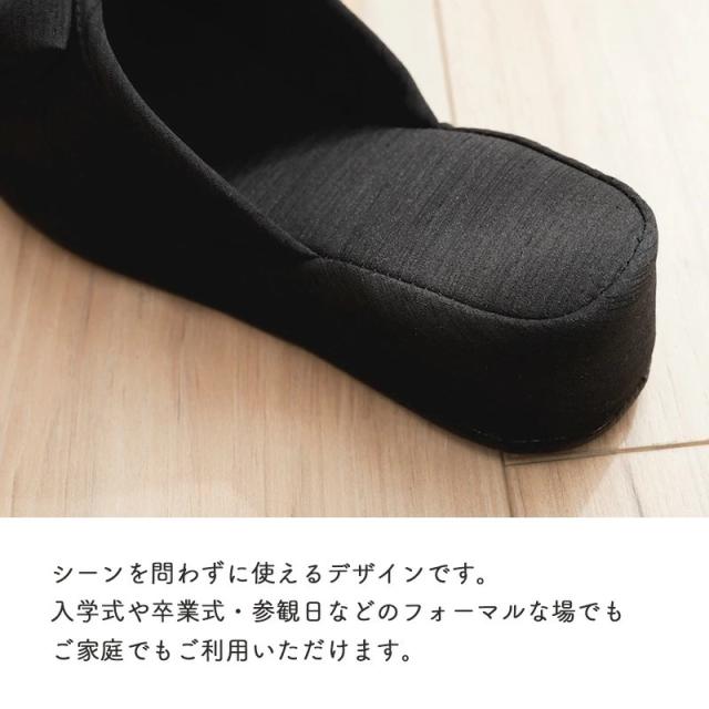 【収納袋付】 ヒールスリッパ 入学式 卒業式 フォーマル 学校行事 リボンスリッパ スリッパ リボン ヒール 保護者 学校 参観 行事 お受験 レディース 女性 かわいい 可愛い おしゃれ 室内 オフィス 授業参観 シャンタン素材 黒 ルームシューズ 4cmヒール