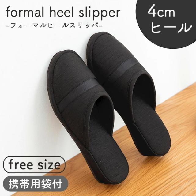 【収納袋付き】4cm ヒールスリッパ フォーマル シャンタン リボンスリッパ スリッパ リボン ヒール 学校行事 入学式 卒業式 保護者 学校 大人 授業参観 行事 お受験 レディース 女性 かわいい 可愛い おしゃれ 室内 オフィス 黒 ルームシューズ 携帯用
