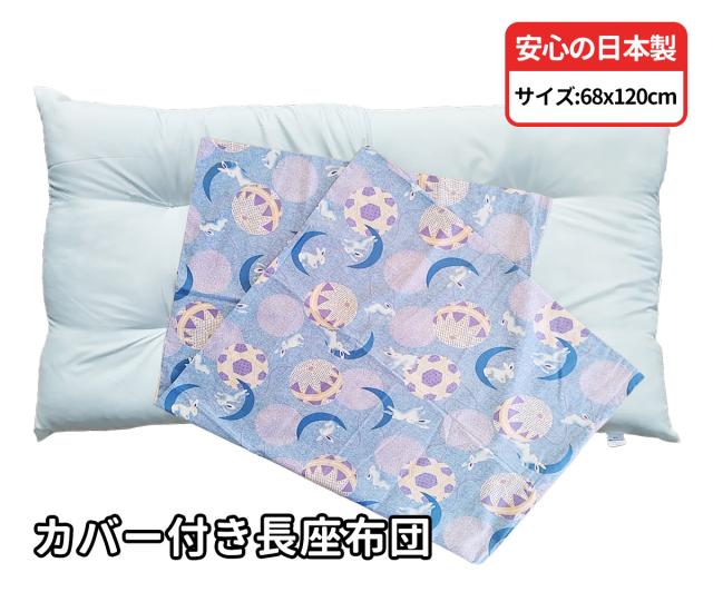 ボリューム 圧縮してない 長座布団 + 長座布団カバー 68 120 cm まりうさぎ ブルー ごろ寝 わた入り クッション ヌード ロングクッション カバー付き 68x120 68 120 cm